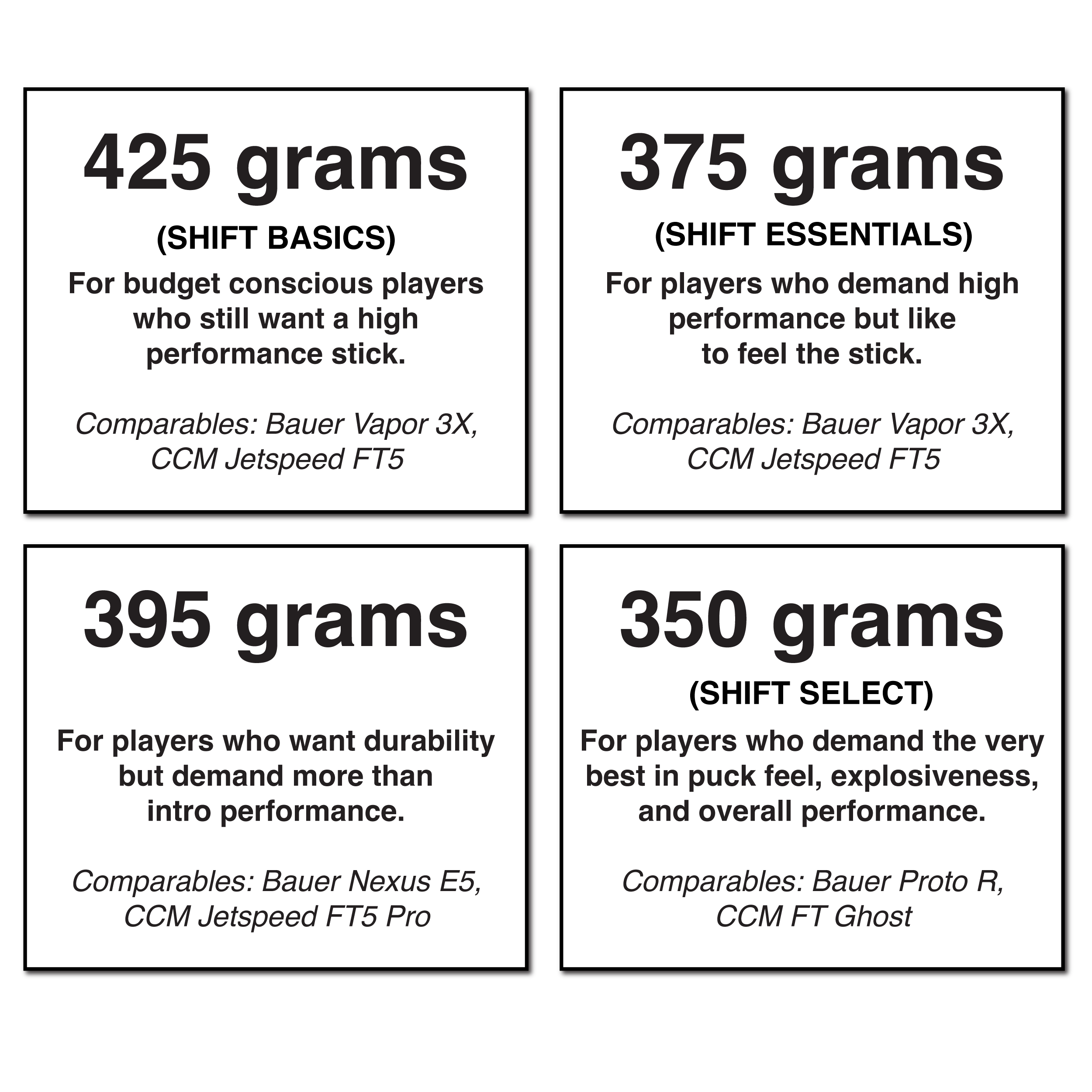Visit shifthockey.com/custom to build a stick tailored to your exact specifications