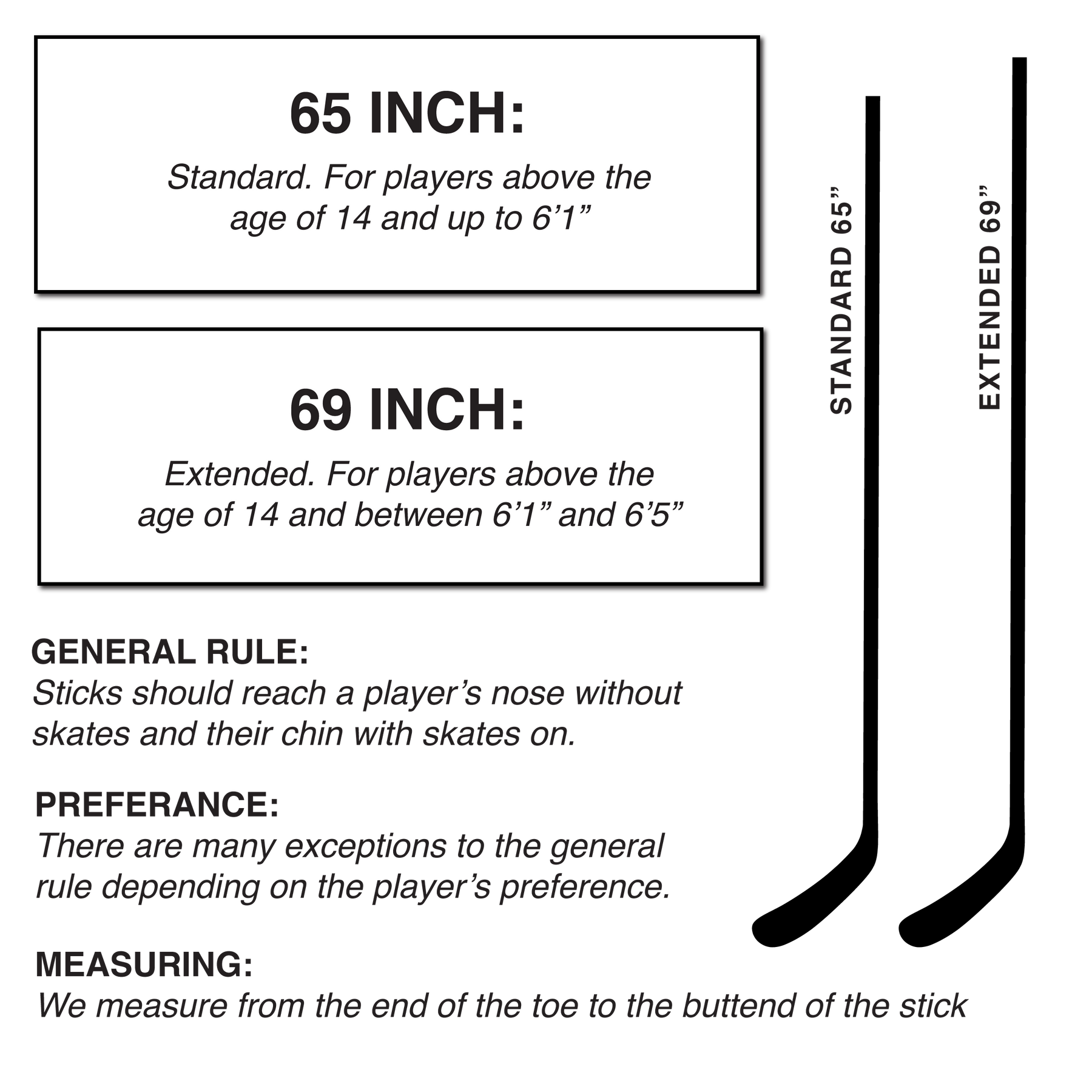 Standard size is 65 Inches (see measurement guide) with a glossy finish and sticky grip.