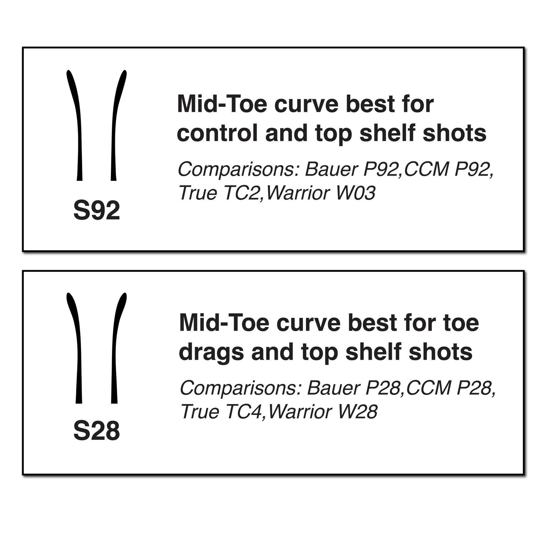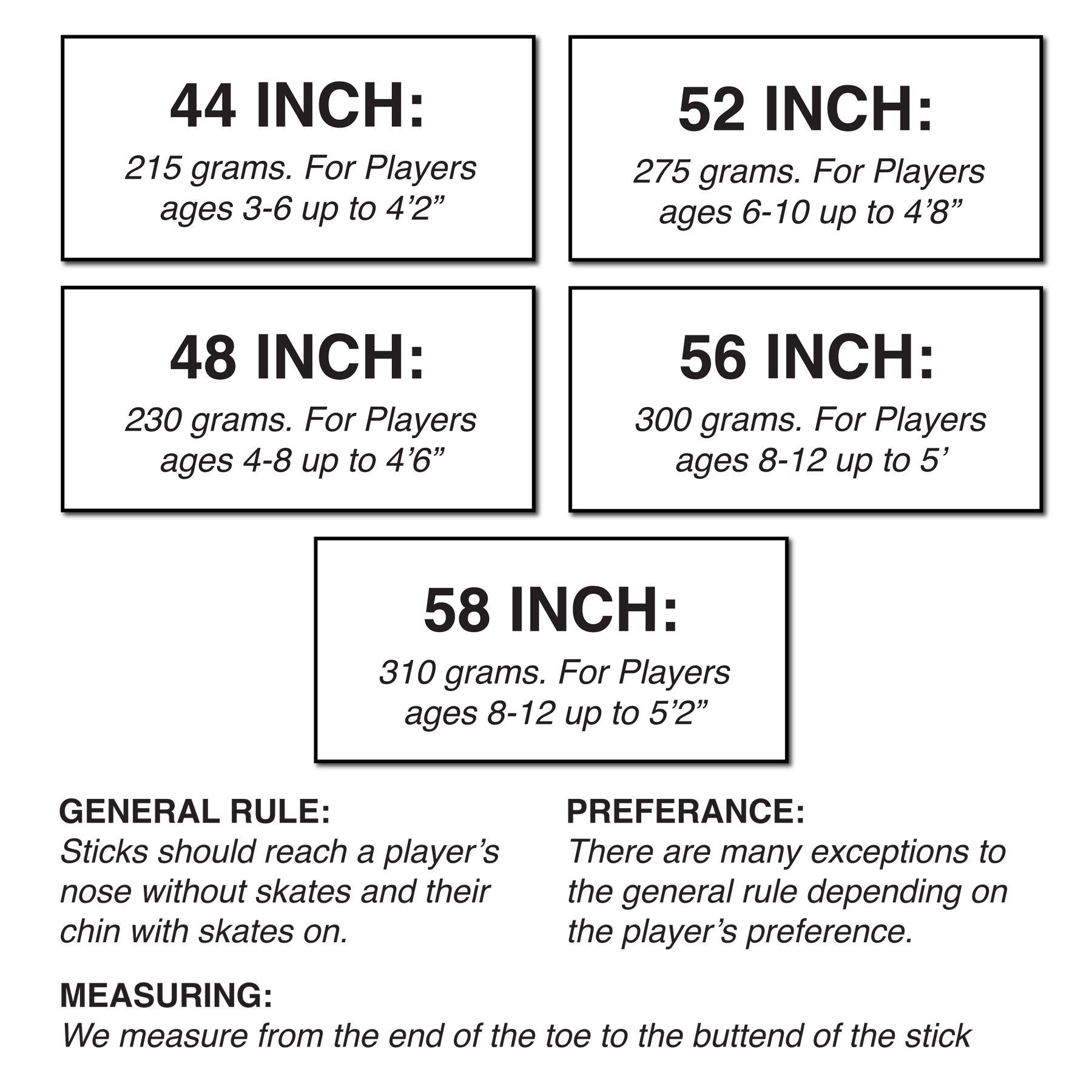 Stick is 58 Inches (see measurement guide) with a glossy finish, sticky grip, and a ribbed corner raised texture.